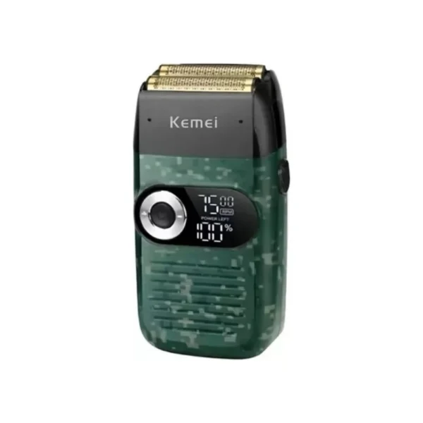 Afeitadora inalámbrica Kemei KM-2027 con recortadora, 120 min de uso, carga rápida en 2 h y display digital.