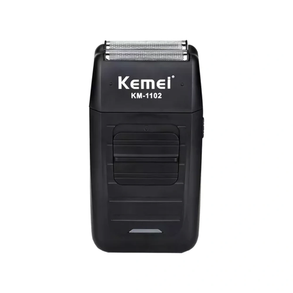 Afeitadora eléctrica Kemei KM-1102 con cuchillas de alta precisión para cortes rápidos y definidos. Ideal para barba y cabello.