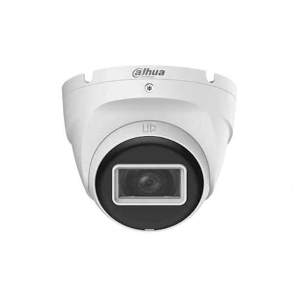 Cámara domo Dahua HDCVI DH-HAC-T2A21N-U con lente de 2.8 mm, resolución 1080p, visión nocturna IR 30m, y carcasa metálica IP67. Ideal para exteriores.