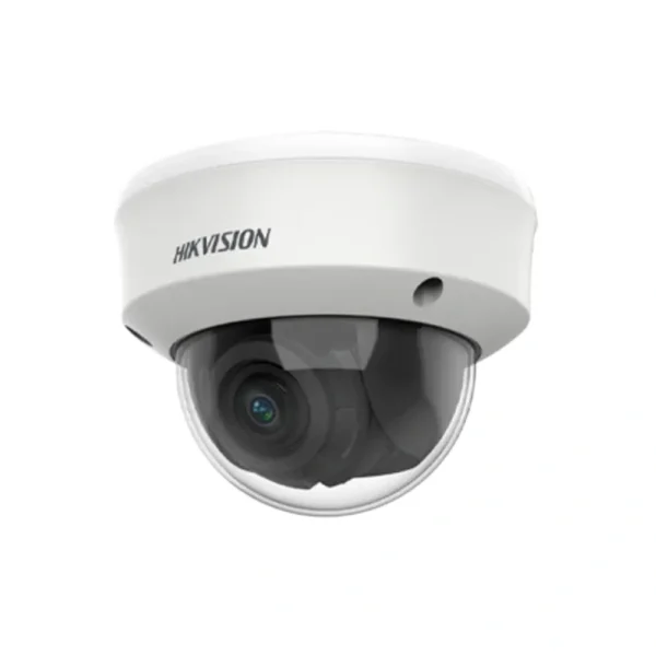 Cámara domo Hikvision 2MP con lente varifocal manual, visión nocturna IR 40m, resistente al agua y vandalismo. Ideal para vigilancia versátil.