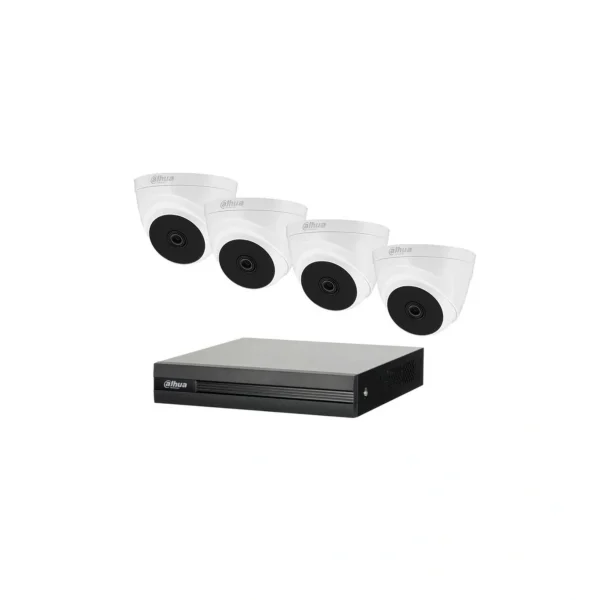 Kit Dahua DH-KIT/XVR1B04-I-1T/4-T1A21N-0360B con 4 cámaras domo 2MP, lente 3.6 mm y disco duro de 1 TB, ideal para vigilancia en hogares y negocios.